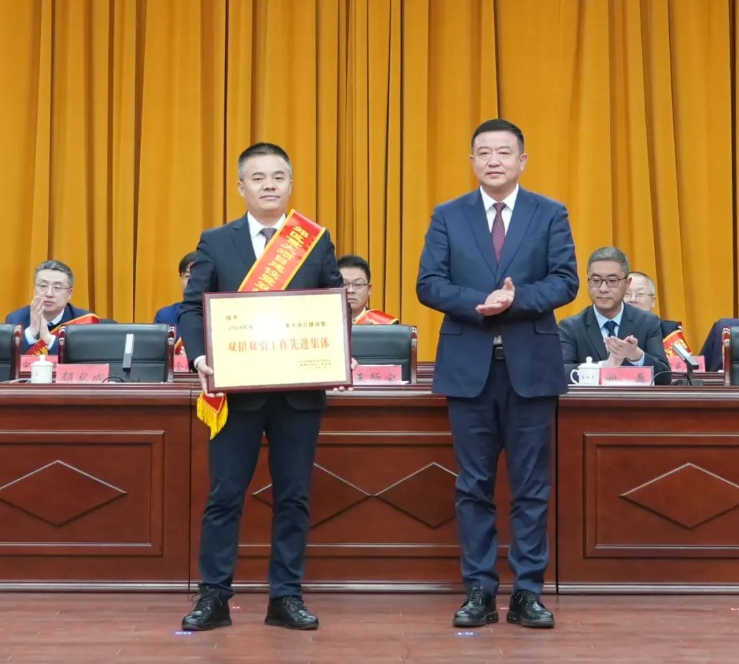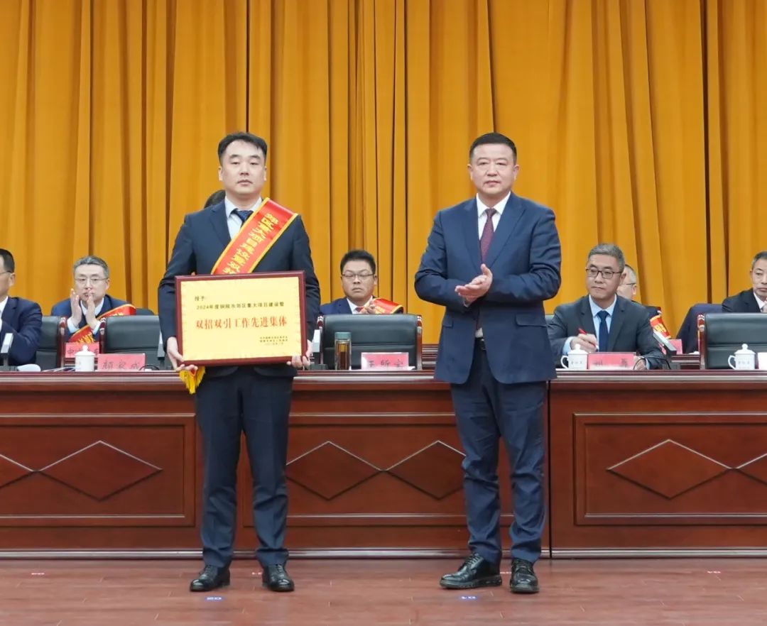 會上,區(qū)委副書記李源宣讀《關(guān)于表彰2024年度銅陵市郊區(qū)重大項目建設(shè)暨雙招雙引工作先進集體和先進個人的通報》;區(qū)委常委、紀(jì)委書記、監(jiān)委主任蔣寧宣讀《關(guān)于2024年作風(fēng)建設(shè)“駿馬獎”“蝸牛杯”認定結(jié)果的通報》并部署全區(qū)作風(fēng)建設(shè)突破年活動有關(guān)工作;副區(qū)長魏國榮宣讀《關(guān)于2024年度重大項目建設(shè)暨雙招雙引工作目標(biāo)考核結(jié)果的通報》。王所寶與其他區(qū)領(lǐng)導(dǎo)一起為2024年度重大項目建設(shè)暨雙招雙引工作先進集體頒獎。銅陵海螺環(huán)境科技有限公司總經(jīng)理陳學(xué)盼、安徽鈺坤材料科技有限公司董事長靳仲柱、銅陵市孚悅科技有限公司總經(jīng)理林海,區(qū)經(jīng)開區(qū)、灰河鄉(xiāng)、老洲鎮(zhèn)作交流發(fā)言。