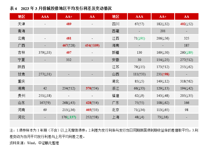 7. 3月份廣西、山西等地區(qū)城投利差走擴明顯
