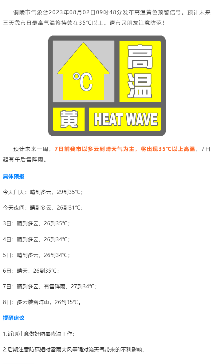 高溫黃色預(yù)警!請(qǐng)注意防范!
