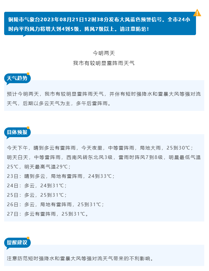 銅陵發(fā)布:藍(lán)色預(yù)警!銅陵接下來(lái)……