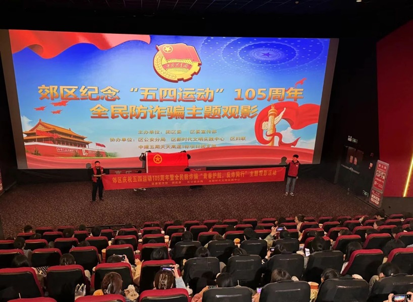 為激發(fā)廣大青年團(tuán)員工作熱情,進(jìn)一步傳承和弘揚(yáng)五四精神,引導(dǎo)青年不負(fù)青春勇?lián)鷷r(shí)代使命任務(wù),4月30日下午,郊區(qū)開(kāi)展紀(jì)念“五四運(yùn)動(dòng)”105周年全民防詐騙主題觀影活動(dòng),來(lái)自全區(qū)160余名青年參加。
